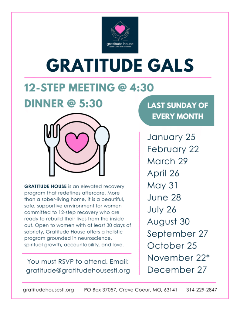 Are you a woman in 12-step recovery? Join us for a spiritual evening with great food and fellowship.